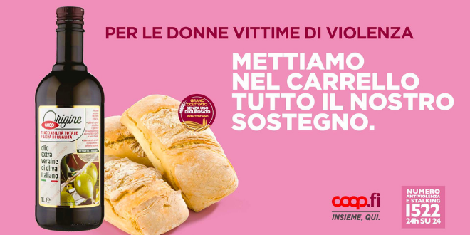 La Cooperativa devolverà 1 euro per ogni bottiglia di olio extravergine di oliva Coop italiano acquistato da Soci e clienti. Inoltre verrà destinato ai centri antiviolenza anche il 5% del ricavato delle vendite del pane di nostra produzione interna. Ricordiamo che il pane viene prodotto utilizzando farina 100% toscana, proveniente da campi coltivati senza l’utilizzo di glifosato.