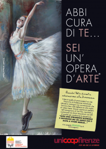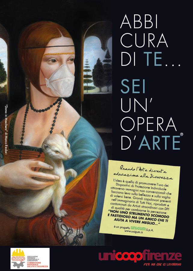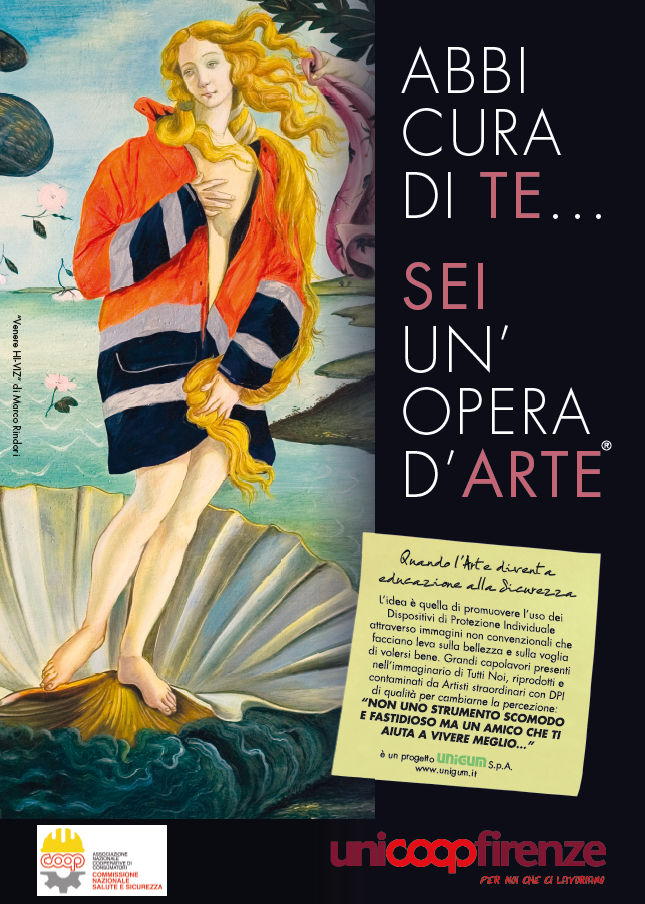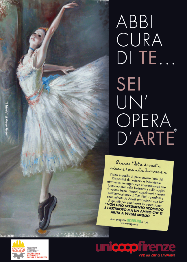 Il dipinto è uno delle tre opere d’arte riprodotte dalla campagna “Abbi cura di Te… Sei un’opera d’Arte®”, ideata da Unigum S.p.a e sostenuta da ANCC e che la nostra Cooperativa divulga con lo scopo di far riflettere su quanto sia importante la sicurezza all’interno della nostra attività lavorativa.