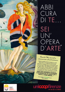 Insieme alle locandine e ai segnalibri della campagna “Abbi cura di Te… Sei un’opera d’Arte®”, Unicoop Firenze ha promosso l’utilizzo di una spilla realizzata da ANCC, per rafforzare ancora di più il messaggio di questa importante iniziativa.