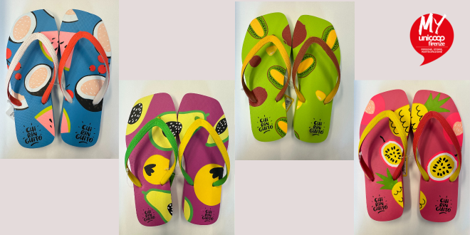 Le ciabatte infradito “Chiringuito” sono caratterizzate da immagini fresche e colorate che riportano alla scelta di evidenziare, anche con la grafica stessa, un prodotto giovane e solare.
