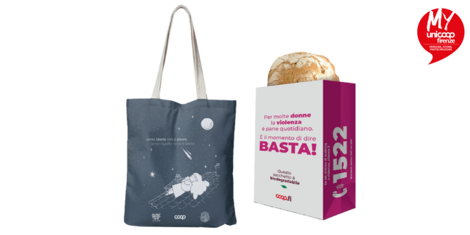 - Nei maggiori supermercati di Unicoop Firenze (il cui elenco sarà presente su informatorecoopfi.it) Soci e clienti potranno acquistare la borsa in tela con il messaggio “Senza libertà non è amore, senza rispetto non c’è libertà”. Il disegno sulla borsa è di Giulia Cecchettin, ed è stato donato a Coop dalla Fondazione Cecchettin. Per ogni borsa acquistata, 50 centesimi saranno devoluti alla Fondazione Giulia Cecchettin, a sostegno dei progetti contro la violenza.