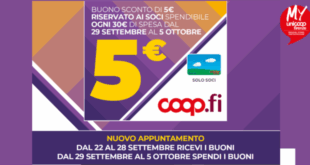 Dal 22 al 28 settembre i Soci che acquisteranno prodotti della “Buona Spesa” riceveranno ogni 15€ un buono sconto da 5€, che la settimana successiva, dal 29 settembre al 5 ottobre, potrà essere utilizzato ogni 30€ di spesa, su tutti i prodotti. L’iniziativa sarà attiva in tutti i punti di …