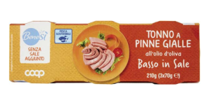 Tonno a pinne gialle all’olio d’oliva Basso in sale Benesì Coop – 3×70 g