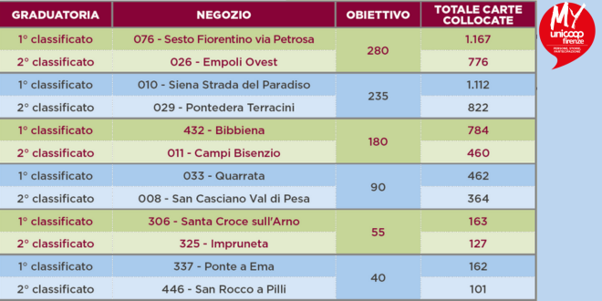 Il numero di carte approvate nel periodo del contest è stato di 19.400, un risultato molto importante ottenuto grazie all’ ottimo lavoro svolto da tutti i colleghi dei punti vendita di Unicoop Firenze e Terre di Mezzo.