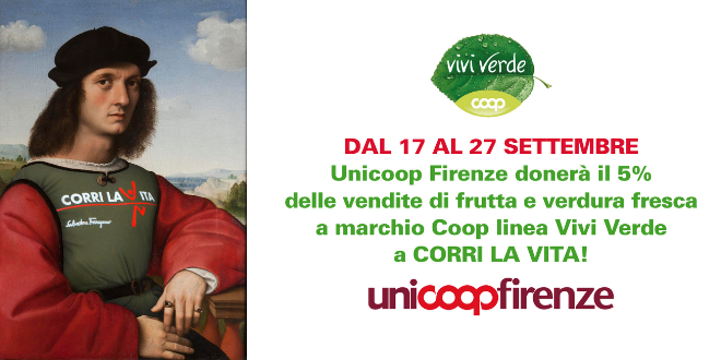Per dieci giorni, infatti, la cooperativa destinerà a CORRI LA VITA il 5% delle vendite di frutta e verdura fresca del marchio Coop Vivi Verde che identifica la gamma di prodotti amici dell’ambiente, che, grazie alla scelta di metodi di coltivazione biologici, sono vincenti per la salute.