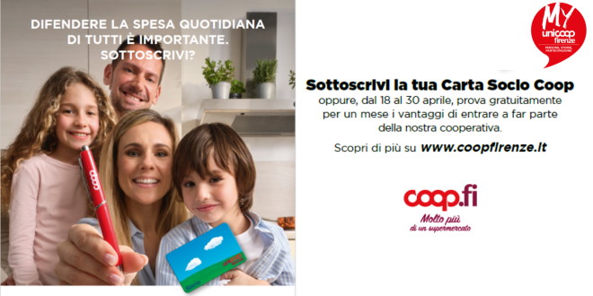 Dal 18 al 30 aprile saranno distribuiti in cassa volantini che spiegheranno il valore e i vantaggi dell’essere Socio a chi ancora non lo è.