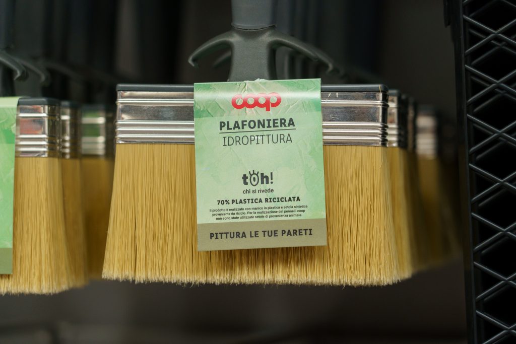 Le nuove referenze presentano sul packaging il logo della gamma “Toh! Chi si rivede”; manici e setole sono infatti realizzati per il 70% con materiale riciclato post consumo e sono quindi prodotti ad alta sostenibilità e convenienti nel prezzo.