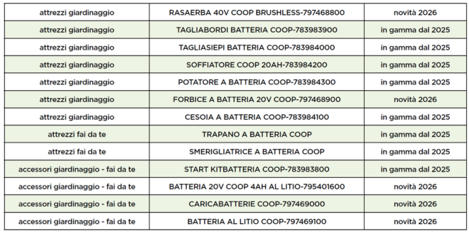 La gamma completa di attrezzi a marchio Coop per il 2026: