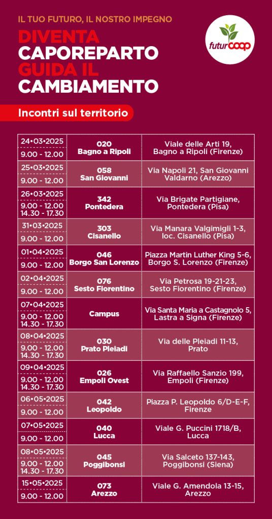 Entra nel vivo la gestione dei sedici nuovi punti vendita che Unicoop Firenze ha acquisito …