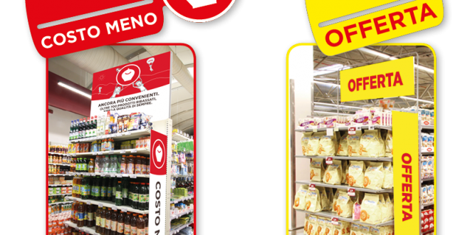 La comunicazione interna al punto vendita cambierà radicalmente: dalle aree promo e dalle testate promozionali andranno via i cartelli rossi con la scritta “conviene”, proprio perché, come già detto, il concetto di “convenienza” non dovrà più essere associato al prodotto in promozione temporanea.