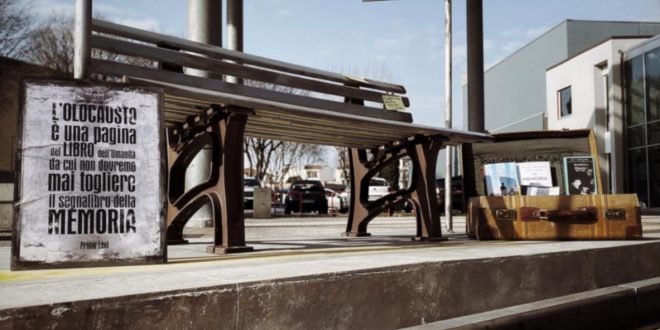 Nell’installazione un binario, una vecchia stazione che rappresenta il passato da non dimenticare e un baule con i libri che, sotto varie aspetti e con diversi stili, raccontano le atrocità della Shoah. Anche se la stazione richiama il tempo passato, quello dell’epoca fascista e delle deportazioni, il treno immaginario che passa in piazza Gavinana ci porta verso il futuro, in cui quello che è successo non deve ripetersi.
