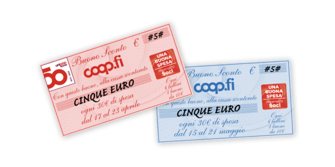 Dall’11 al 16 aprile 2023 effettuando l’acquisto di prodotti che “parlano” dei Nostri Valori, i Soci e i clienti riceveranno, ogni 15€ di spesa complessiva, un Buono Sconto da 5€, da spendere dal 17 al 23 aprile, ogni 30€ di spesa totale.