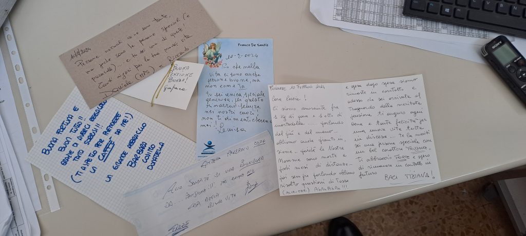 Poi, la mattina del mio ultimo giorno, arrivo e trovo i festoni davanti di mia cassa con scritto “Finalmente in pensione”,