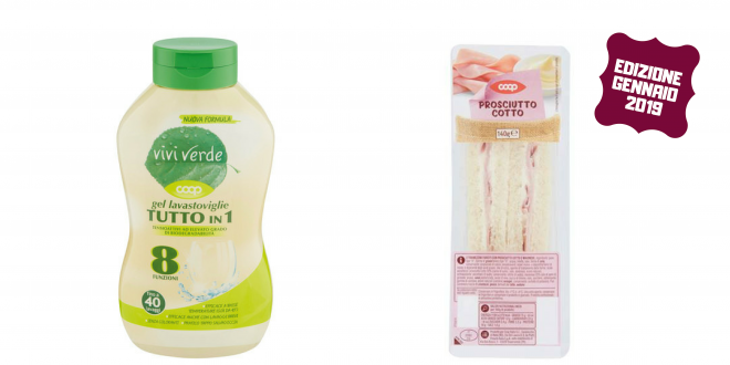 I risultati del Gel lavastoviglie tutto in 1 Vivi verde e del tramezzino al prosciutto Coop