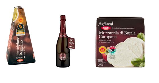 Tra i prodotti che rappresentano nel mondo il patrimonio unico della nostra cultura gastronomica: la mozzarella di bufala campana, la pizza napoletana, il Parmigiano Reggiano, il prosciutto di Parma e il San Daniele.