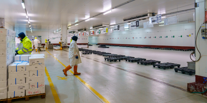 I prodotti arrivano scaglionati durante un arco di tempo che va dalle ore 20:00 alle ore 1:00, a seconda dei giorni. Tutti i controlli vengono registrati e visionati, la mattina seguente, dai colleghi dell’ufficio commerciale Pescheria che, in caso di anomalie, si attivano immediatamente con i fornitori interessati.