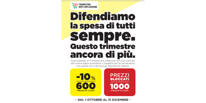 Dal 1° ottobre al 31 dicembre l’iniziativa convenienza al via, nei nostri negozi, toccherà 1600 prodotti di largo consumo a marchio Coop, scelti tra quelli maggiormente presenti nella spesa quotidiana delle famiglie: