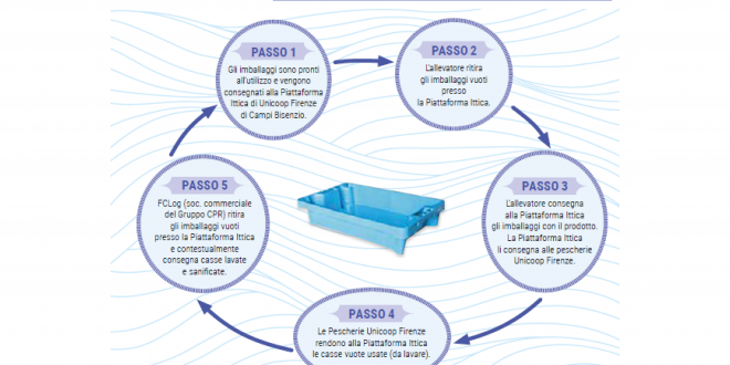 L’imballaggio ittico non veniva riciclato per diversi motivi, come ad esempio la contaminazione da residui organici del pesce, una percezione olfattiva di difficile rimozione e una costosa movimentazione per recuperare bassi quantitativi di materiale. La soluzione trovata, insieme alla Cooperativa CPR System, furono delle cassette di materiale plastico riutilizzabili a circuito chiuso.