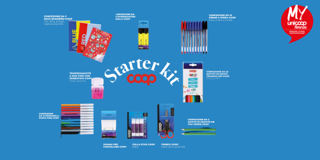 Da sempre vicina alle famiglie, Unicoop Firenze nei suoi punti vendita propone speciali kit scolastici, adatti ad ogni budget senza rinunciare alla qualità. Sarà disponibile lo Starter kit composto da prodotti a marchio Coop: un pacchetto utile e completo, che prevede tutto il necessario per la scuola al prezzo davvero conveniente di 9,50€.
