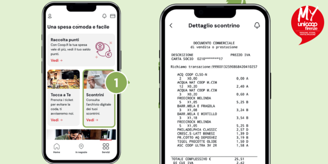 Lo scontrino completo sarà comunque sempre consultabile, in formato digitale, nell’Area Riservata del sito e dell’App Coop.fi o nella App SalvApp.
