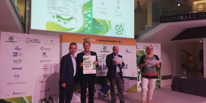 Il riconoscimento è stato consegnato durante la cerimonia di premiazione dei Comuni Ricicloni, l’iniziativa di Legambiente dedicata a comunità locali, amministratori e cittadini che hanno ottenuto i migliori risultati nella gestione dei rifiuti urbani. La premiazione si è tenuta come evento conclusivo dell’EcoForum 2019, la Conferenza nazionale sull’economia circolare dei rifiuti.