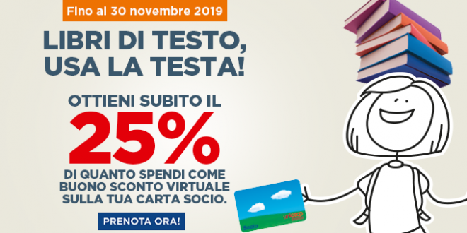 Fino al 30 Novembre, prenotando online i libri scolastici e universitari, si otterrà un buono sconto virtuale pari al 25% di quanto speso per i libri.