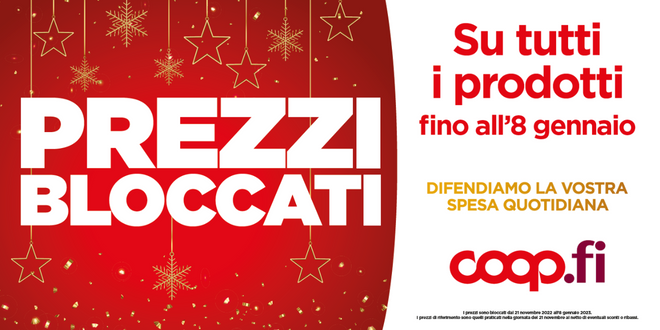 A fronte di listini di acquisto in continuo aumento, la Cooperativa assorbirà gli aumenti internamente: i mancati rialzi prezzo non graveranno quindi sui fornitori. I prezzi di riferimento dell’iniziativa sono quelli praticati nella giornata del 21 novembre, al netto di eventuali sconti o ribassi precedenti al 21 novembre: in questo caso, finito il periodo di offerta, il prodotto tornerà in vendita al prezzo di mercato. Inoltre nel periodo prenatalizio torneranno anche i buoni sconto da 5 Euro spendibili in tutti i punti vendita.