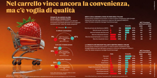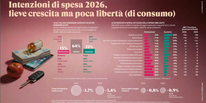 Il Rapporto Coop 2026 delinea in sostanza un quadro di un’Italia in cui si consuma meno e con più attenzione, cittadini prudenti nelle aspettative economiche, consumi alimentari influenzati da scelte di salute, qualità e convenienza, un mercato che guarda a innovazione e sostenibilità come elementi chiave per superare le difficoltà.