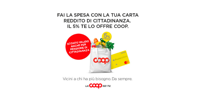 La promozione solidale non è una novità per il mondo Coop, che utilizza il nuovo strumento del reddito di cittadinanza per individuare ed aiutare chi si trova in condizione di disagio economico.