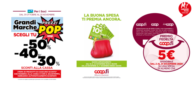 Dal 18 al 24 novembre, in tutti i punti vendita Coop.fi, i Soci e i clienti che acquisteranno i prodotti “Una Buona Spesa” riceveranno – ogni 15€ e multipli – un buono sconto da 10€.