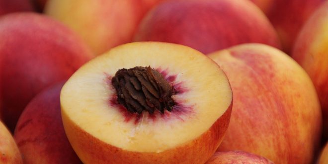 Tagliare a fette irregolari le pesche, adagiatele su una teglia foderata con carta forno e, se siete particolarmente amanti del dolce, spolverizzate con un po’ di zucchero.