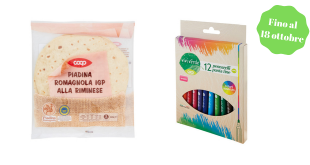 La piadina e i pennarelli Vivi verde al centro dell’assaggio numero 25 Piadina Romagnola IGP alla Riminese Coop – 5 x 120g ean: 8001120597267 La piadina Romagnola IGP alla Riminese Coop è preparata utilizzando ingredienti semplici. L’accurata cottura consente di mantenere inalterata tutta la sua morbidezza. 12 Pennarelli Punta …