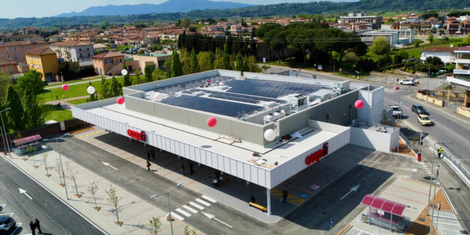 È dotato di un impianto fotovoltaico che soddisfa circa il 20% del consumo annuo del punto vendita; un’illuminazione led di ultima generazione; da dispositivi che permettono la regolazione delle luci secondo l’effettivo fabbisogno e da una pompa di calore per la climatizzazione invernale con parziale recupero del calore generato dell’impianto frigo alimentare per il riscaldamento dell’acqua sanitaria.