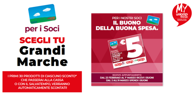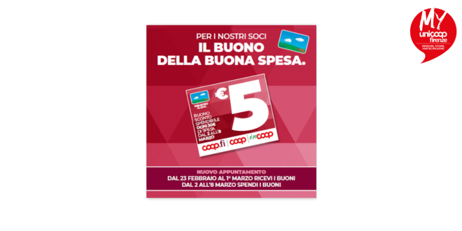 Dal 23 febbraio al 1° marzo verrà erogato un Buono Spesa del valore di 5€ sull’acquisto di 15€ e multipli di prodotti “Una Buona Spesa”.