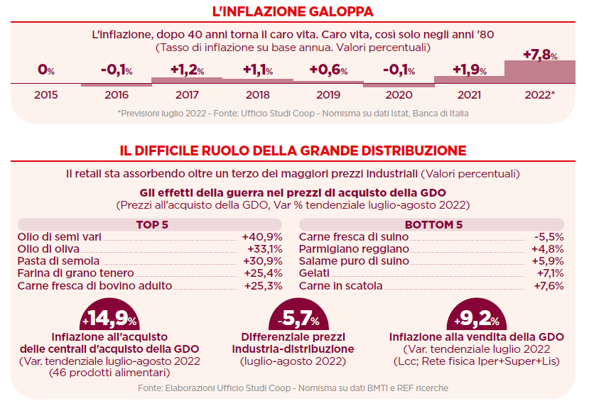 Le imprese della grande distribuzione da un lato devono fare i conti con l’eccezionale rincaro dei listini industriali e l’esplosione del caro energia, dall’altro con le difficoltà della domanda finale.
