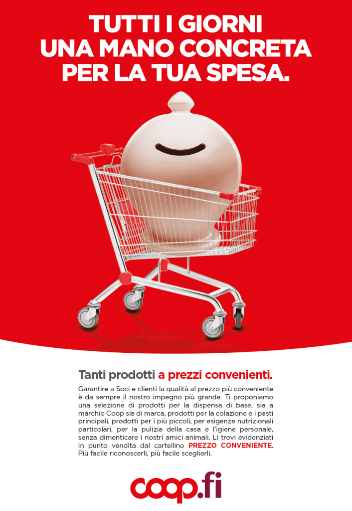 Attraverso questa nuova iniziativa garantiremo in tutti i nostri punti vendita la presenza di una selezione di prodotti di qualità, non solo a marchio Coop, a un prezzo molto conveniente e che soddisfi tutte le esigenze di spesa. Si tratta di prodotti della dispensa di base, per la colazione, per i pasti principali, per i più piccoli, per esigenze nutrizionali particolari, per la pulizia della casa e di igiene personale e, infine per i nostri amici animali.