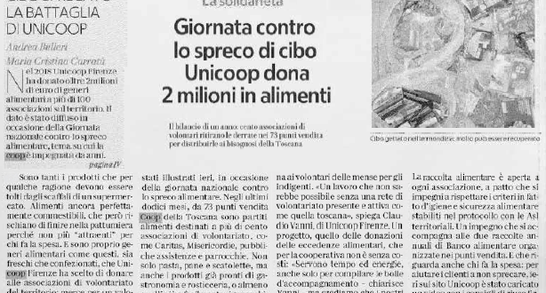 Come riportato da un articolo su “La Repubblica Firenze”, nello scorso anno Unicoop Firenze ha donato oltre 2 milioni di euro in generi alimentari a più di 100 associazioni sul territorio. Questi dati sono il risultato del progetto nazionale “Buon Fine”, a cui la nostra Cooperativa aderisce da ormai 15 anni.