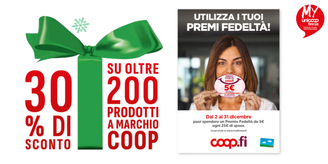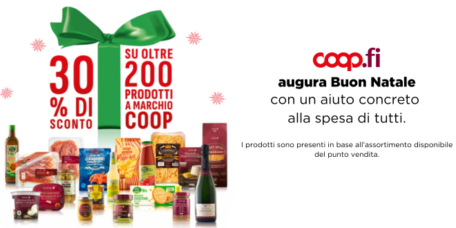 Dal 12 al 27 Dicembre, sarà applicato uno sconto del 30% su oltre 200 prodotti a marchio Coop*.